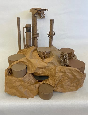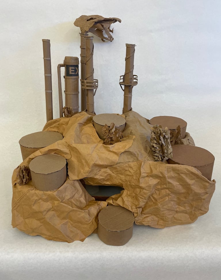 Yes, this is a cardboard oil refinery you wear on your head.